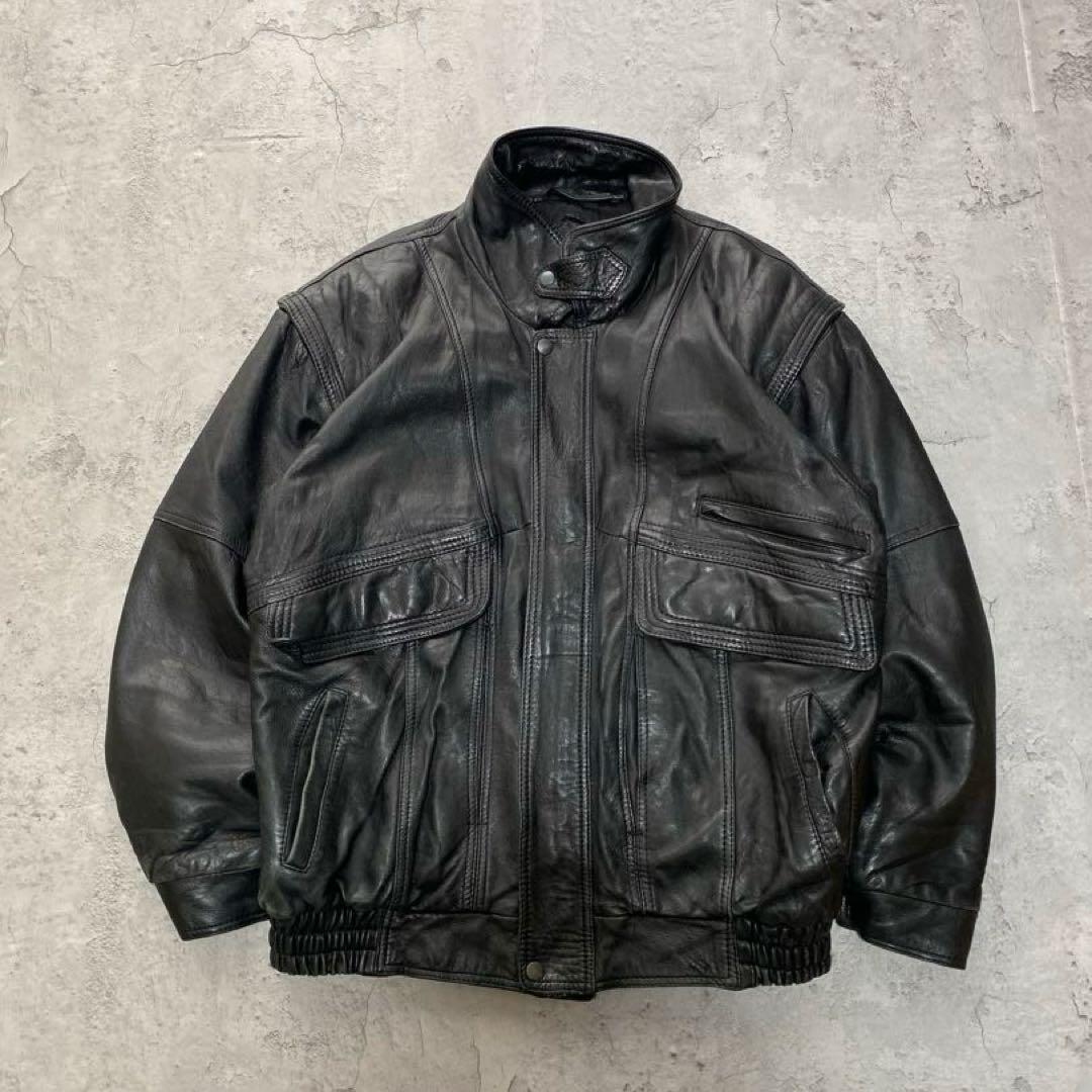 90's~ leather Jacket BLK