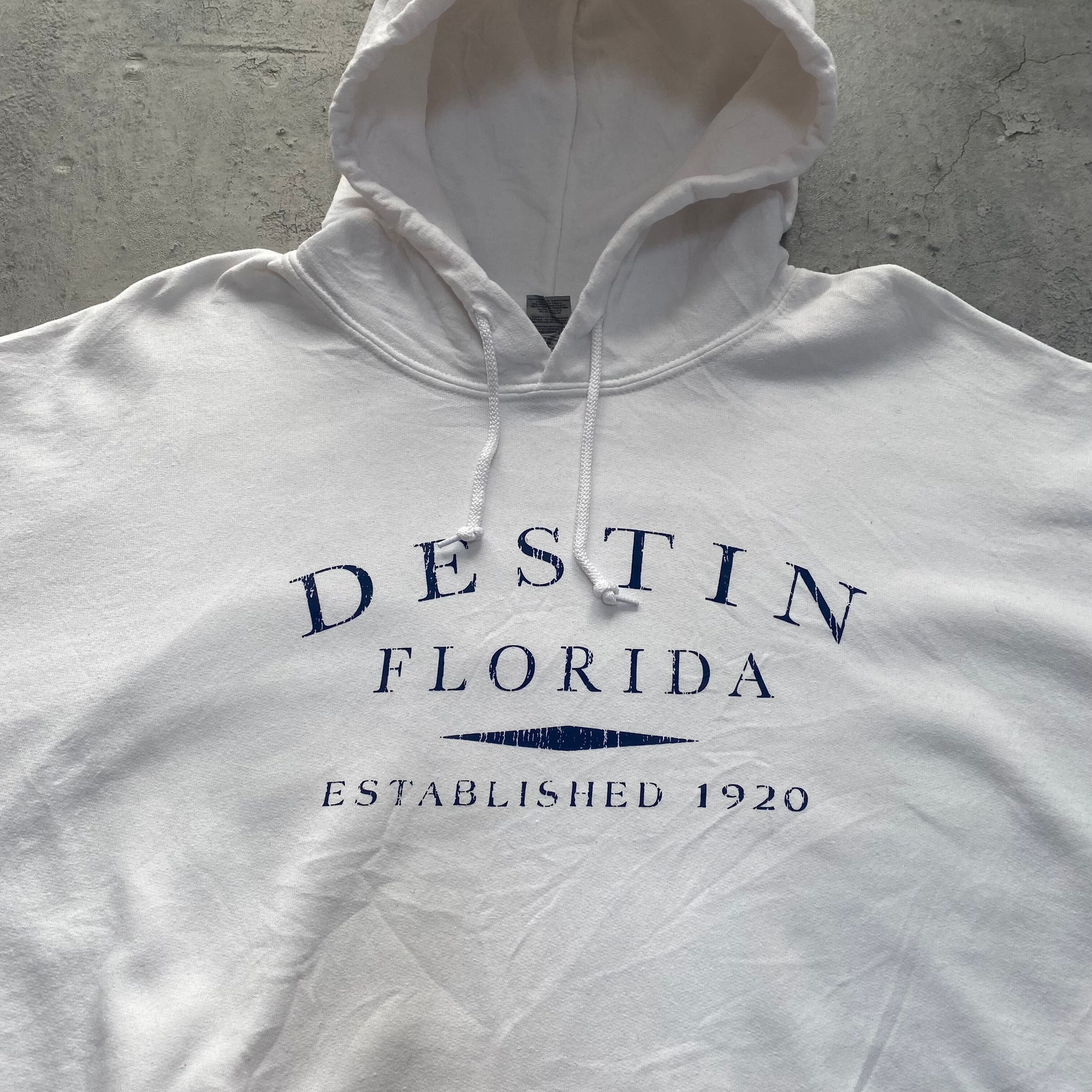 ギルダン USA古着 DESTIN パーカー スウェット プリント フーディ 白