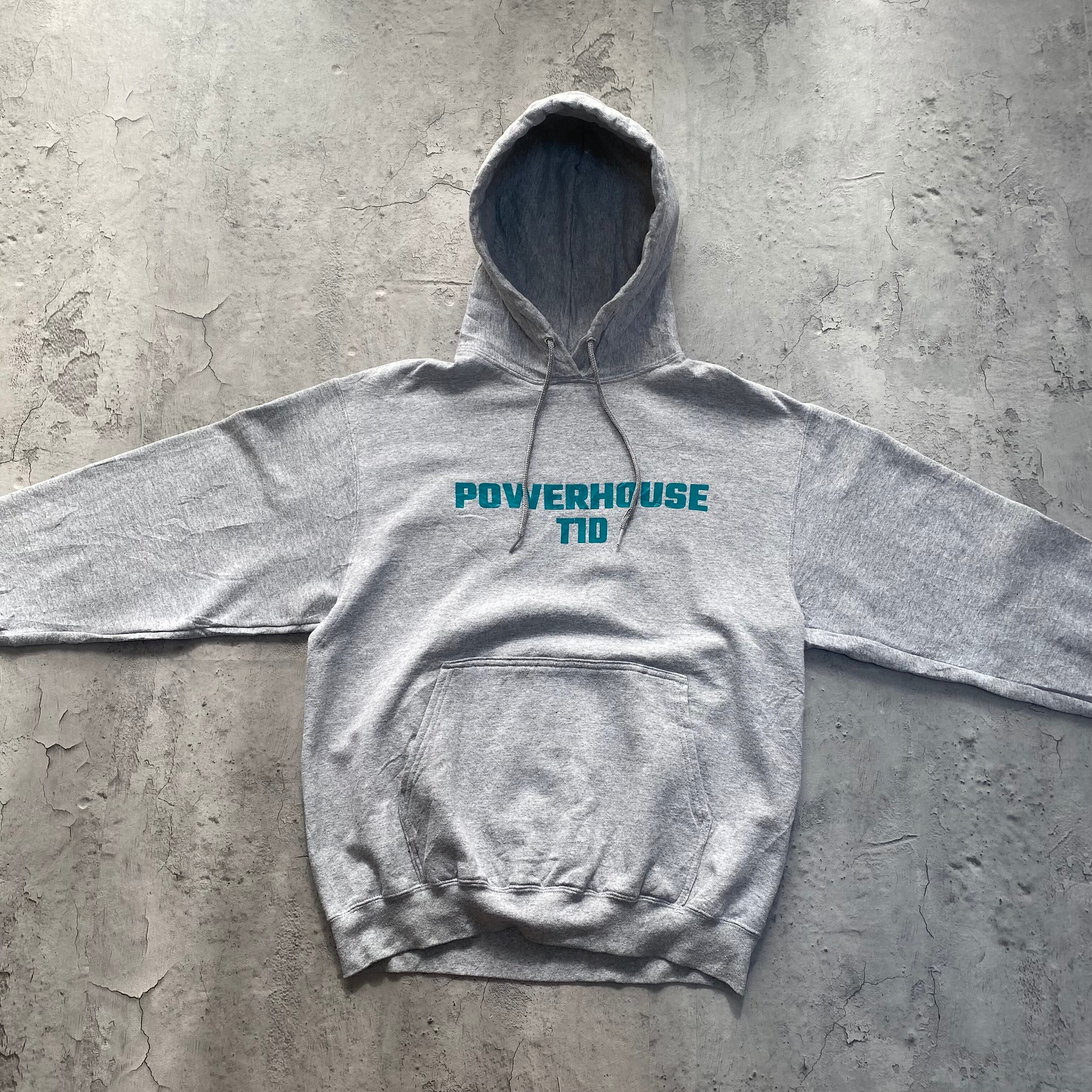 USA古着 POWERHOUSE パーカー スウェット バックプリント グレー
