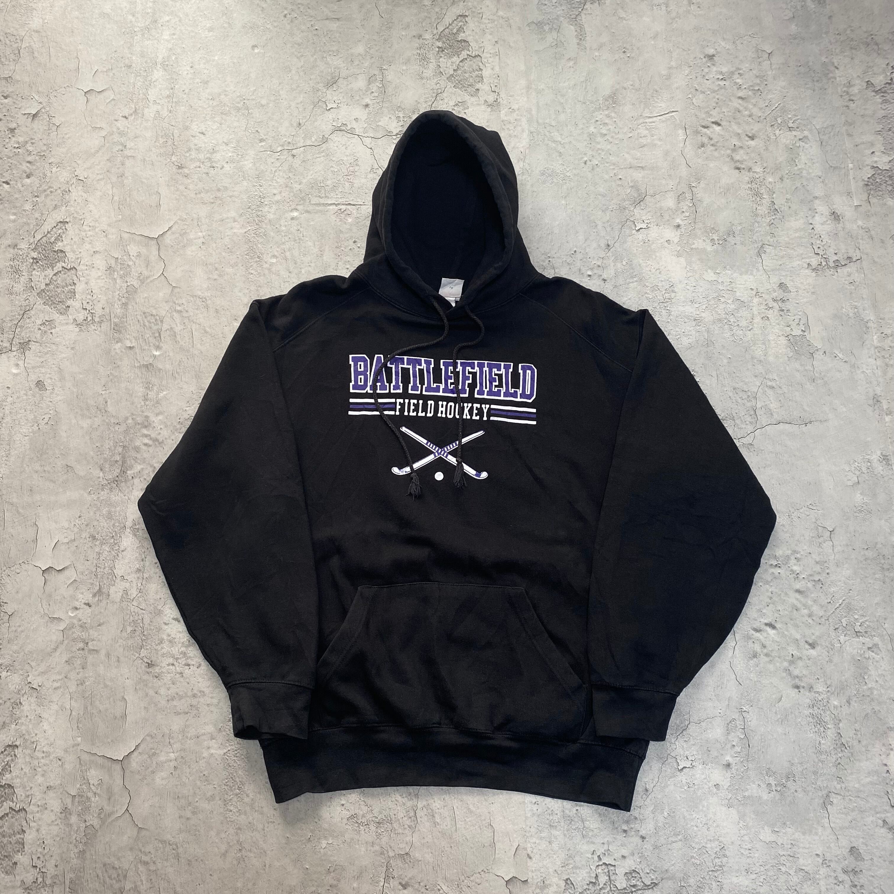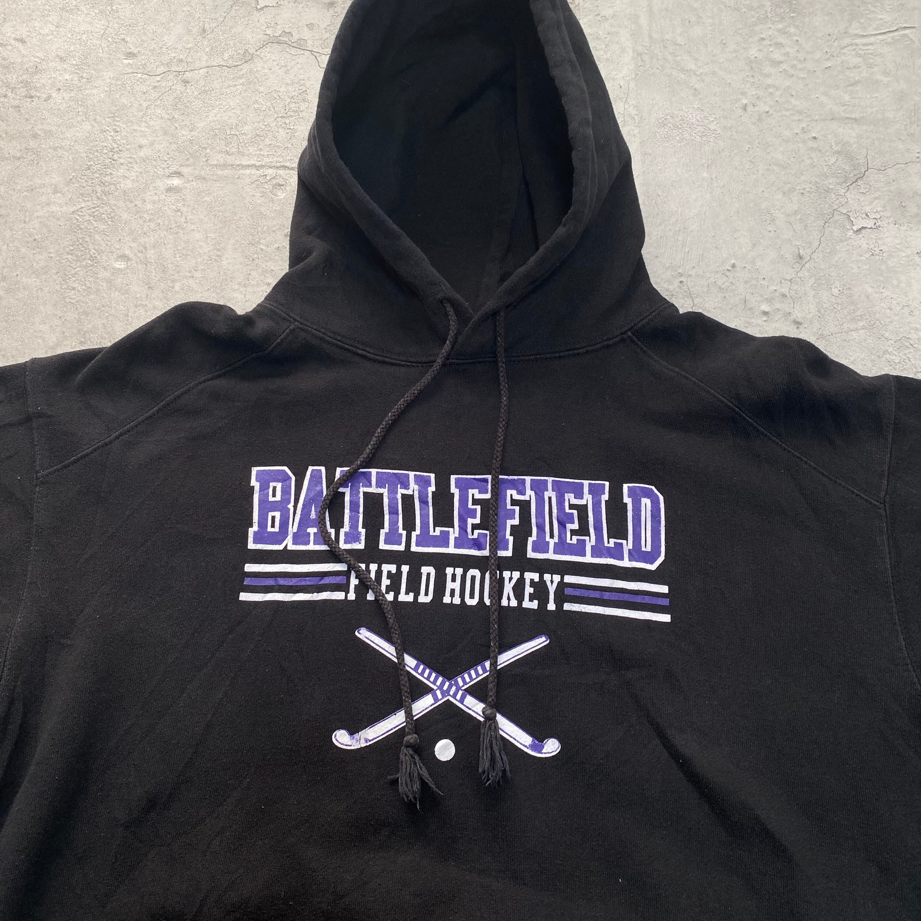 USA古着 三段プリント ホッケー パーカー スウェット フーディ ブラック