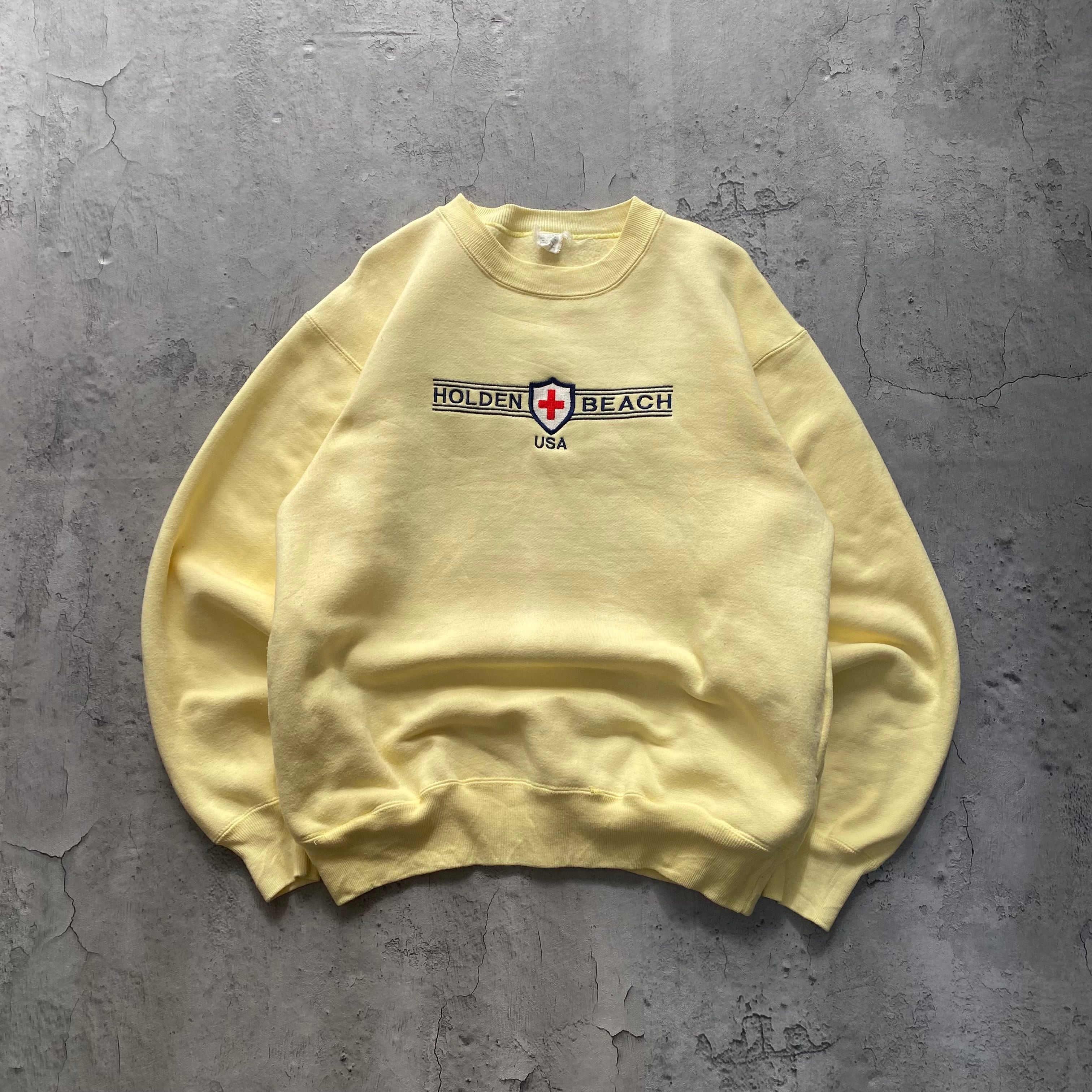 USA古着 センターロゴ 刺繍 スウェット トレーナー イエロー 厚手