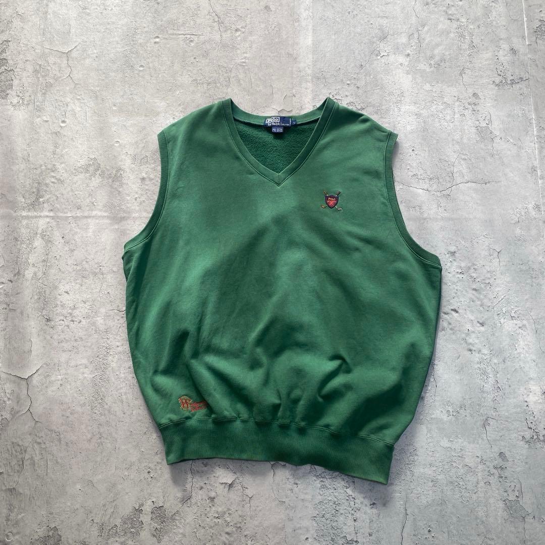 90’s ラルフローレン USA古着 刺繍ロゴ ベスト スウェット L グリーン